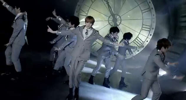 And the dancing? Oh yeah. I don’t know what it was about the end of 2011 and beginning of 2012, but the amount of time and clock dances seems to have exploded. I guess if it’s popular. I totally enjoyed the boys’ clock dance it was powerful and cool. This group has always had some sharp dancing skills, though. And why is it that the Japanese PVs seem to be a bit more artsy in style than the Korean? Just wondering.