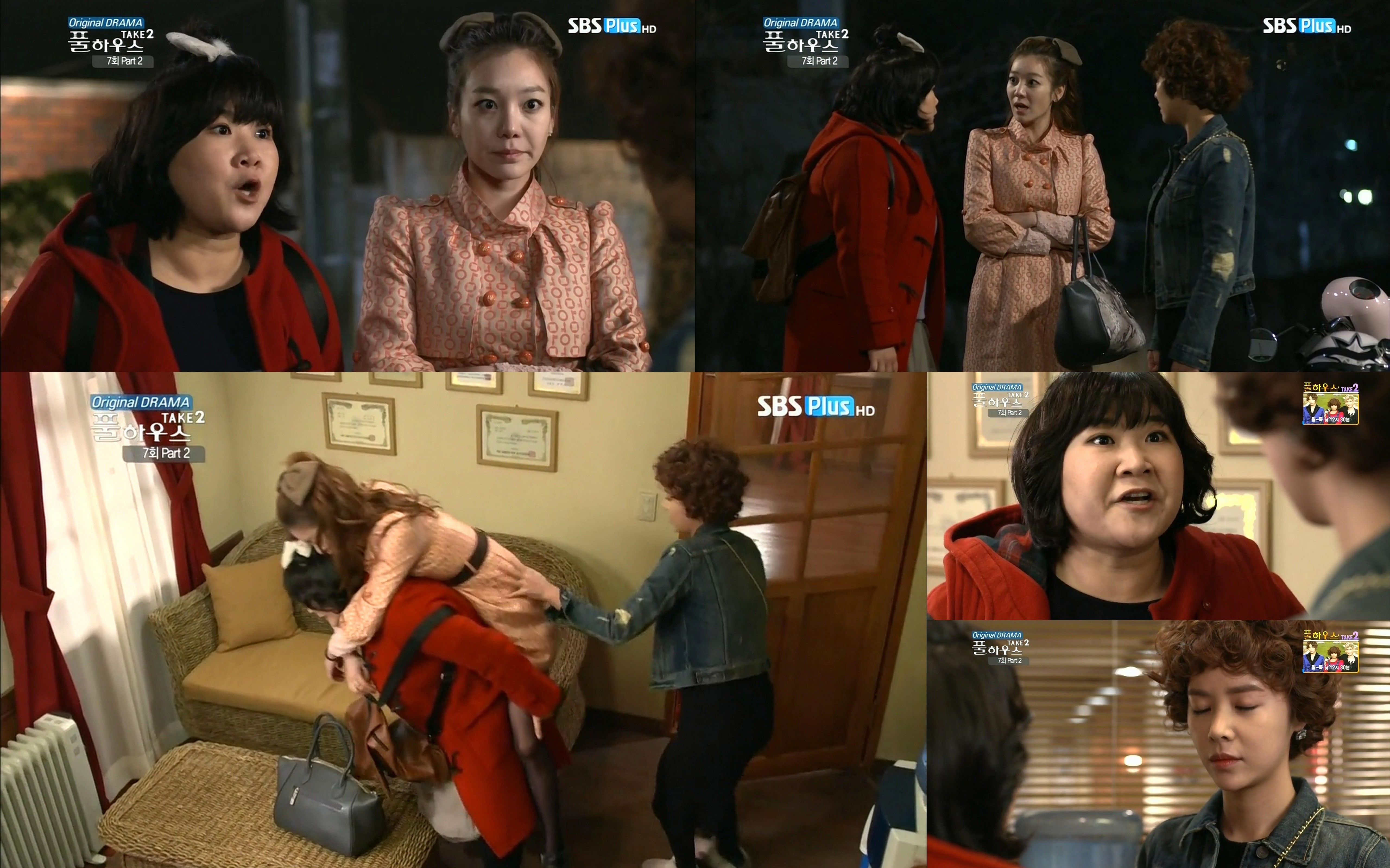 Enter Jin Se Ryeong. Man Ok is shocked. Se Ryeong confirms who she is and Man Ok tells her she must take her shoes off in someone else’s house. Se Ryeong then requests slippers. Man Ok says there are none left. Yes there are, on Man Ok’s feet. WHAT? Man Ok quickly takes her slippers off and puts them in front of Se Ryeong who then asks where Tae Ik is. Enter Tae Ik in his bathrobe demanding if Man Ok did or did not see everything. When he sees Se Ryeong, he stops in shock as she grins at him. Don’t tell me she’s moving in to the house as well?Hwang Jung Eum, No Min Woo