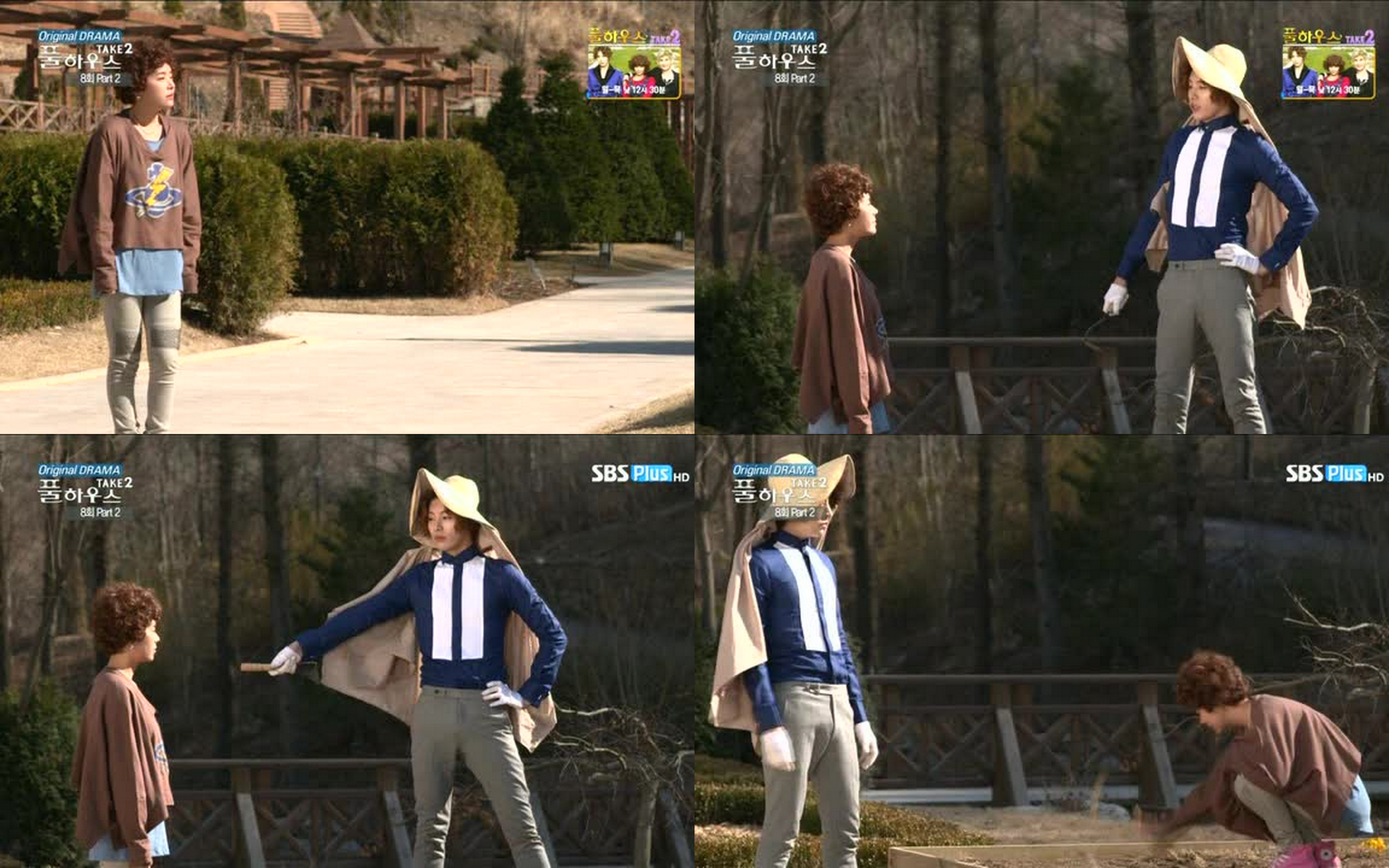 The embarrassed Man Ok leaves and walks with her hands pressed against her flaming face. Tae Ik calls out to her and Man Ok is shocked to see him still digging around in the flower beds. She’s surprised he’s so into it. She then walks over. What is it? Tae Ik gets up and says that since she started it, she should finish it. How could she just abandon her work. LOL. Tae Ik is back in his farmer hat!!!!! Man Ok reluctantly takes the spade and begins digging vigorously while he watches on. They are really so cute together. Him giving her back this task should definitely help her burn away frustrations from Kang Hwi’s affection.Hwang Jung Eum, No Min WooSnowflake then tells Joon there is someone who wishes to meet him at a hotel at 8. Joon wonders who it is, but Snowflake only says it’s a person who will give him strength…or was it power…? Joon looks at his watch and says it will have to wait until 9. Snowflake hangs up and then calls Hwa Min unnie (whoever that is). She speaks in English and says that Joon wishes to meet this girl after hearing about her. Um…That’s painting the truth a tad, isn’t it? Snowflake then hangs up and smiles. Evil wench.Lee Hoon
