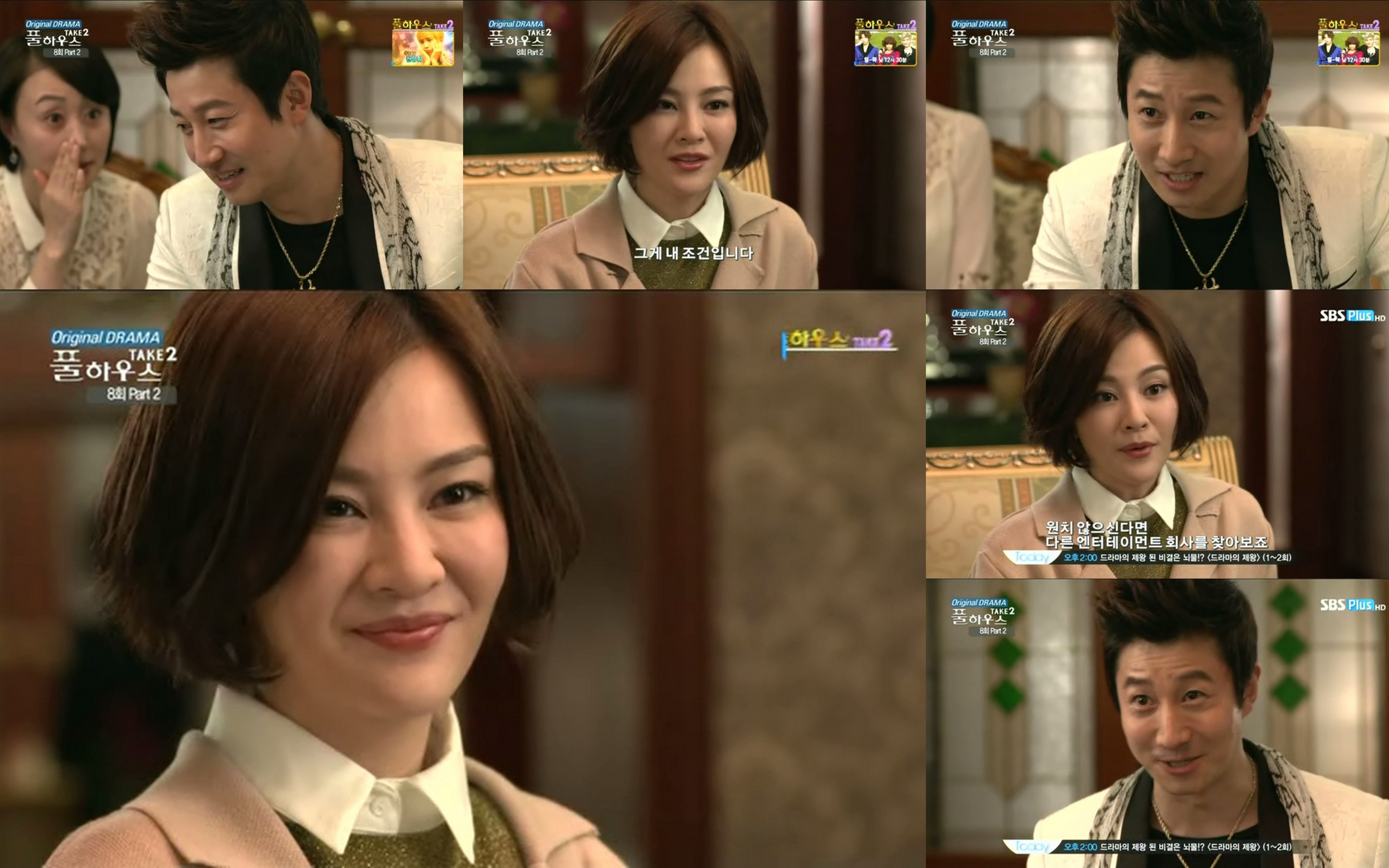 Snowflake is unhappily looking at the engagement photos and complaining. The bell rings and since no one is around, she goes and gets the package. When she brings it back in, curiosity gets the better of her and she opens it. It’s the pictures Tae Ik and Man Ok took after they officially became engaged. She notices the date on all of them is the same. She calls the studio and lies about being Tae Ik’s manager and the studio tells her that director Kim had them sent to Tae Ik’s house. So she then calls the director up and he’s over the moon to hear from top star Jin Se Ryeong. Why is she calling? After the usual pleasantries, Snowflake brings up how the director seems to be working with Joon a lot. Kim complains about the sudden call and the problems he had with Tae Ik and the woman PRETENDING to be his fiancée. He then hangs up as he has to start a new shoot. Drat. Now she knows it’s a all a show. Tae Ik and Man Ok return home and are met by the leaving Snowflake. Where did they go so early? Tae Ik had a shoot. Tae Ik angrily goes upstairs and Man Ok yells after him to  quickly changed and come down. Snowflake smiles at Man Ok. Does Snowflake have something to say? Not at all. Man Ok goes upstairs as well while Snowflake says it was all fake, huh?No Min Woo, Hwang Jung Eum