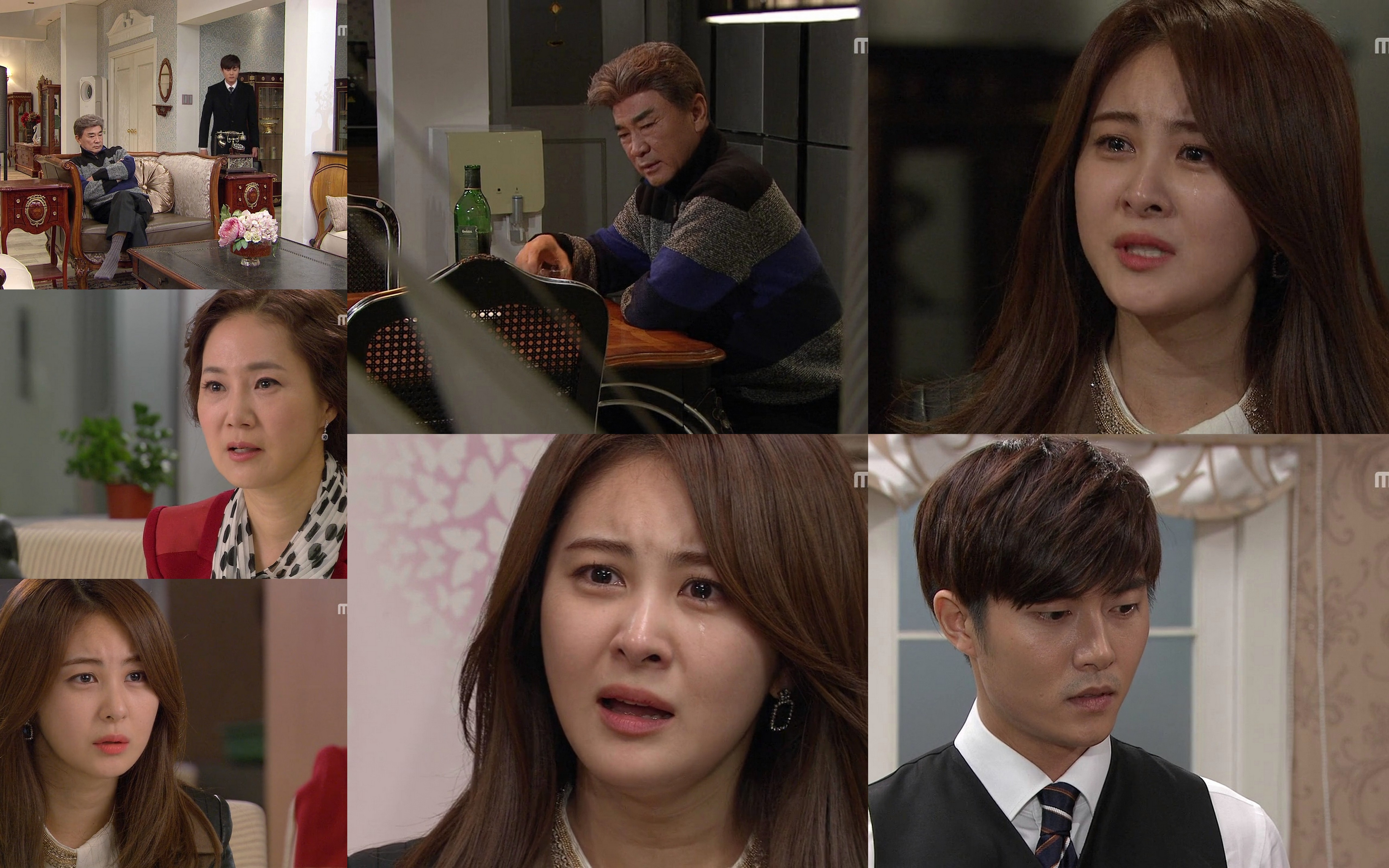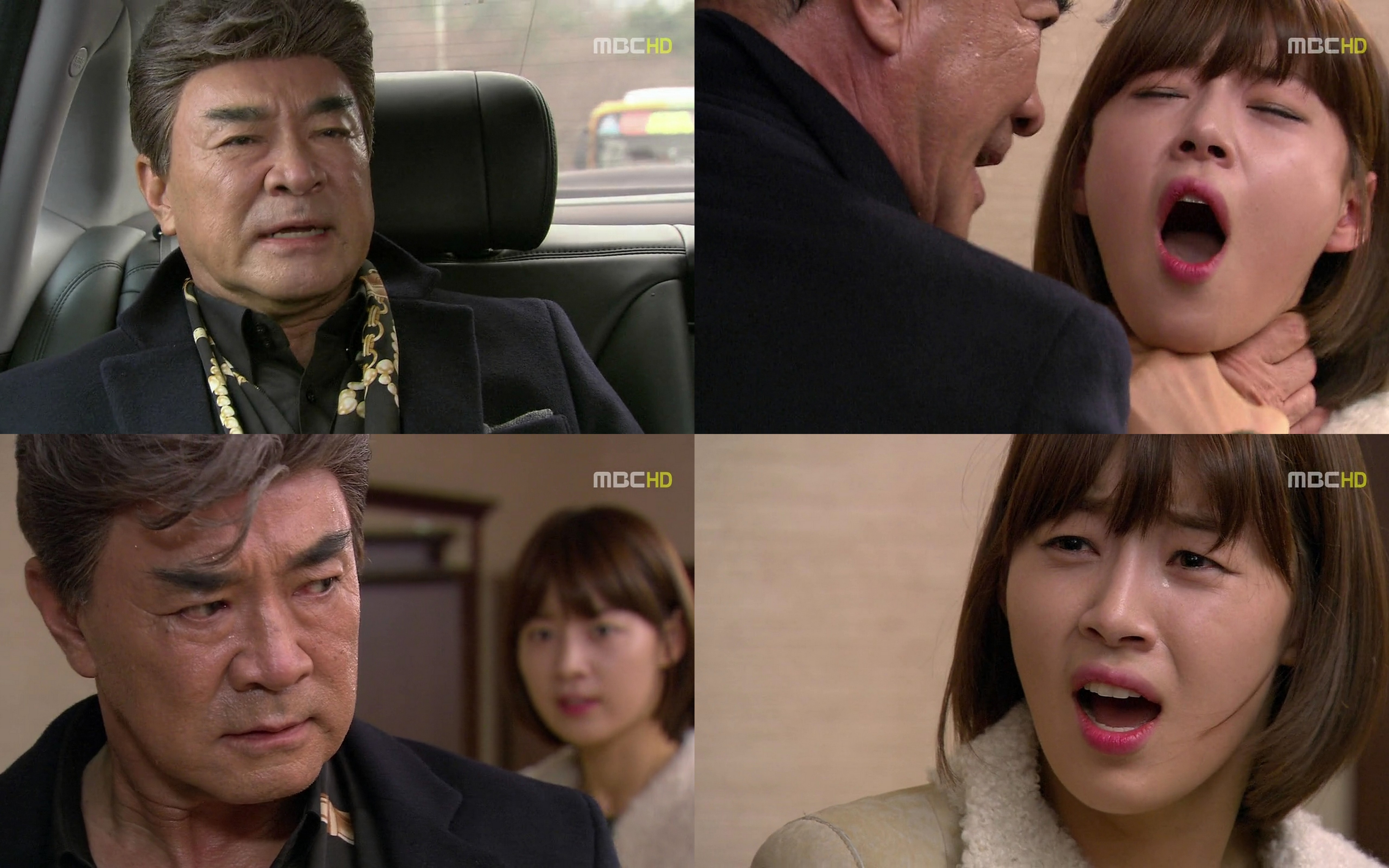 Jang’s hand shakes uncontrollably while his driver asks where they should go. Jang says he needs to see his wife. He then bites his hand and demands to know why it is shaking. He arrive sat Geum Hee’s room only to find Hae Joo. He pushes her out of the way and yells for his wife. He needs her. Hae Joo screams at him to disappear since Geum Hee hates to see his face. Jang turns on her and says this is all her fault. This surprises Hae Joo. Jang starts strangling her and says everything will go back into place once she is dead. Enter Geum Hee. She yells at him to calmly stop. Geum Hee screams—doesn’t he know who Hae Joo is? Hae Joo shakes her head, but Geum Hee screams that Hae Joo is his daughter. Jang is in shock.