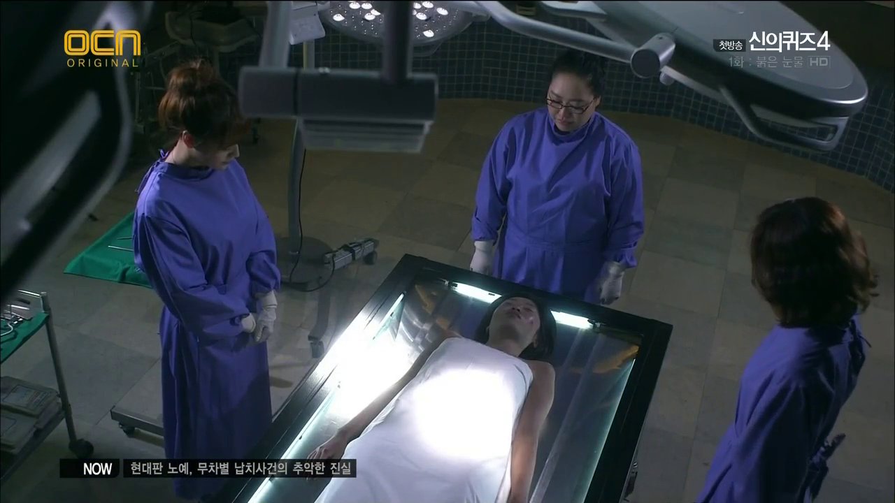 Season 4 picks up one year after the ending of season 3 which left us with Han Jin Woo [Ryu Duk Hwan] collapsing on his way to meet his lady detective girlfriend Kang Kyung Hee [Yoon Joo Hee] who had finally returned from the US. We open with Kyung Hee and team chasing down kidnapper suspect Kang Bok Ju. The man escapes and Kyung Hee manages to corner him and the two scuffle. She shoots him in the arm and he brains her with a brick. The detective in charge of the investigation takes care of her while the men chase after the runaway. Throughout this entire episode I could not catch that man’s name for the life of me, but looks like he’ll be a regular in their investigations. Anywho, she returns to the ME office and refuses any treatment at all until she changes and sees a sketch artist to describe the suspect upsetting Chief Jo [Park Jun Myun].