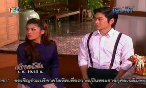 During this stressful time, Monthai comes across a young girl name Beeyachat [younger version played by Pear Nattatida] who is stealing Asoke flowers from a tree on his family’s property. Wiyada takes an instant dislike to the child, but Monthai is very caring to the younger girl and helps her pick the flowers and leaves so she and her poor ailing grandmother have food to eat. He also gives the child money as well that she uses to buy food and medicine. Alas, her grandmother ends up passing away and she is “adopted” by Wiyada’s family (which really means they just take her in as a servant, not a daughter). At this time, the only other person young Bee loves, Monthai, goes to study abroad as planned. Only he doesn’t plan on coming home again as he and his mother have a falling out after Lakkana commits suicide to prove she wasn’t the awful seductress Tuptim thought she was.